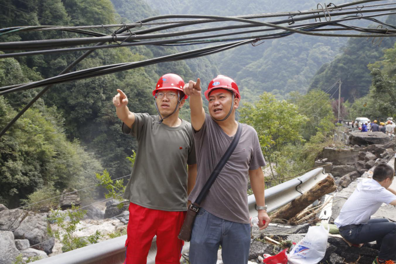 大邑縣交通局副局長陳建偉與集團應急搶險隊討論搶險方案