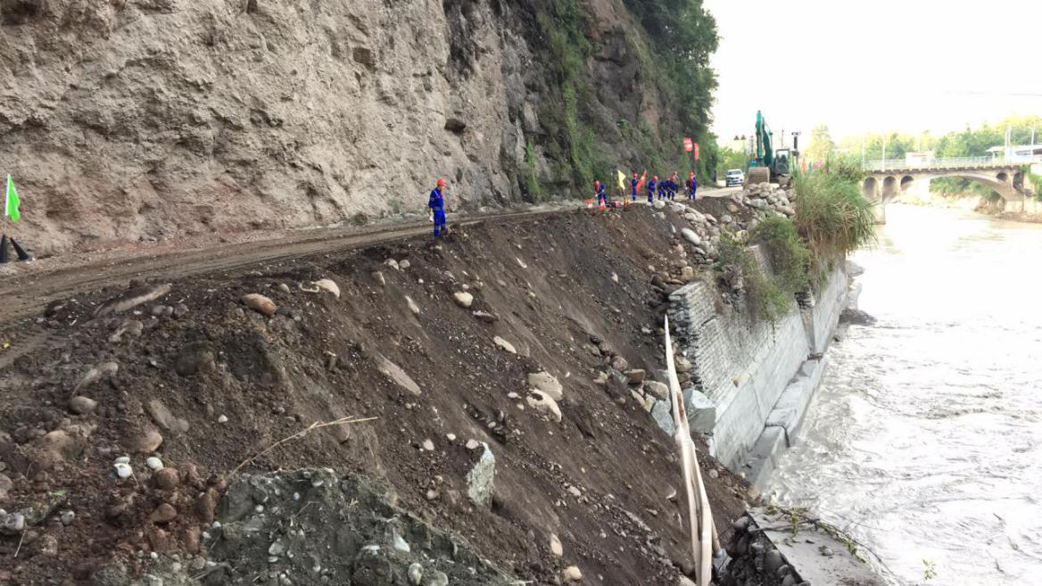 崇州市雞冠山路全長近42公里,受此次強降雨影響,已探明其中31公里路段有24處斷點,其中5處路基沖毀嚴重,有的路段半幅路基路面被山洪沖垮,有的路段路面懸空,有的路段全部被洪水沖毀。