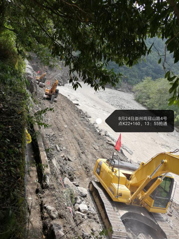 華川集團第一時間向崇州市委、政府請戰,迅速調集搶險搶通攻堅力量開進受災現場。
