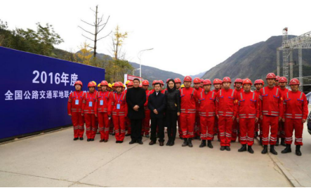 1月22日,由交通運輸部、四川省人民政府、武警交通指揮部聯合主辦的2016年度全國公路交通軍地聯合應急演練在綿陽市平武縣南壩鎮隆重舉行。交通運輸部副部長戴東昌、四川省人民政府副省長楊洪波,武警部隊副參謀長趙建軍少將,武警交通指揮部司令員傅凌少將、參謀長高強少將等相關領導及集團董事長、總裁謝應文,集團副總裁楊開榮出席并觀摩演練。