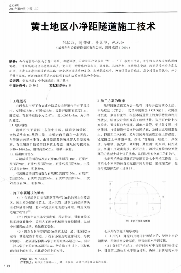 5月12日下午,山西右平項目部收到來自中央級期刊《交通世界》(旬刊)編輯部寄來的學術論文刊登賀信,祝賀由成都華川公路建設集團有限公司山西項目部項目總工程師劉拓益,項目副經理董景印、包術全,項目副總工傅郁建合作的學術論文《黃土地區小凈距隧道施工技術》被采用發表,該項學術論文的發表為集團公司在科技成果方面再次添磚加瓦,同時表明了山西項目在科技成果的創新工作上再上了一個新的臺階。