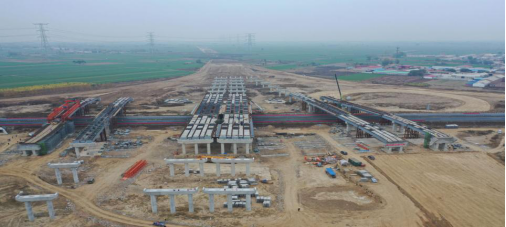 辛留佐樞紐互通位于高陽縣辛留佐村東,是津石高速全線僅有的三座跨接高速施工樞紐互通之一,主要用于津石高速與保滄高速交通流相互轉換,互通型式采用變形苜蓿葉加半直連式匝道,設計主線和11處匝道,分別上跨保滄高速5次,互通區內設置主線橋500米/1座,匝道橋940米/4座,通道涵洞10道。鋼箱梁跨徑60米,橋梁下部結構均設計在保滄高速路基坡腳兩側,該互通上跨部分均為鋼結構箱梁,共計14片,需要14次跨越保滄高速進行架設,其中鋼結構箱梁最大長度為35米,總量101噸,由于要上跨河北省正在運行的交通主干道保滄高速公路進行施工,該項工作更是成為了津石高速JSLQ5標的年度重點工作,同時也備受各方關注。